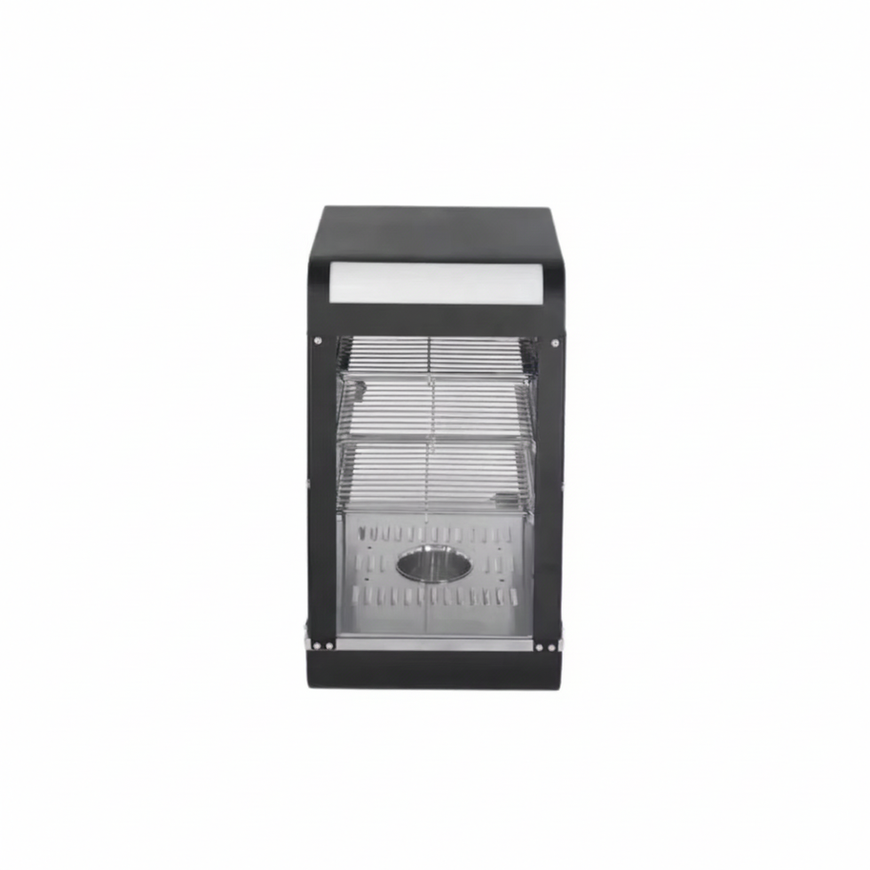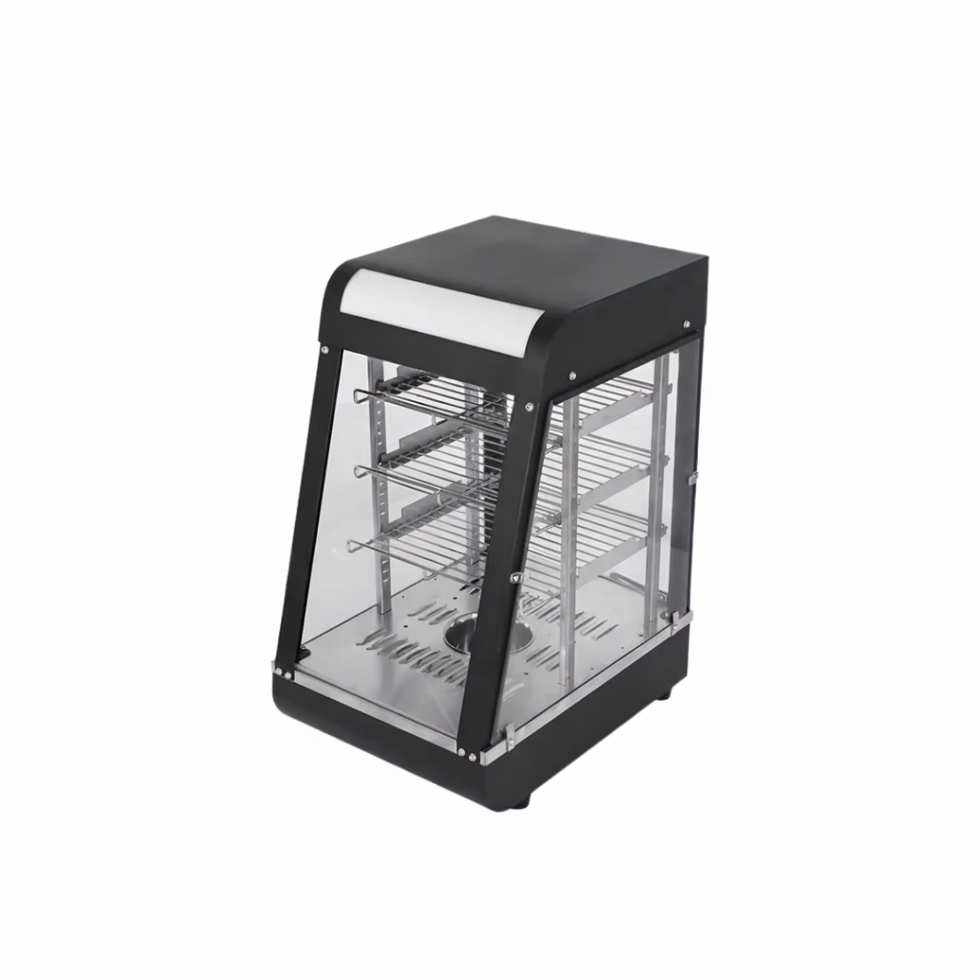 Moonstar Electric Hot Display Showcase has adjustable stainless steel display shelves, sliding doors, and highly transparent toughened glass for easy access and great product visibility. Variable heating and Temperature control, as well as specially designed heating baffles, ensure uniform Temperature distribution and control. Very suitable for canteens, convenience stores, cafeterias, and other self service restaurants.