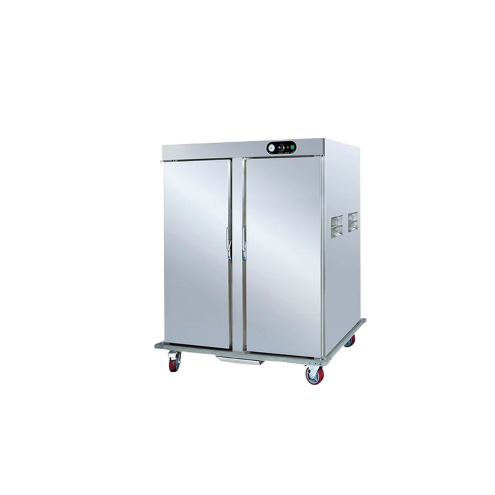 Moonstar food warming cart is made of high quality stainless steel 201, with movable internal fittings for easy cleaning. Equip with 11 Nickel• plated iron shelves, also can be available with GN2/1• 25mm or GN1/1• 25mm. With EGO thermostat:30~85℃, you can set the Temperature as needed to ensure all food stays warm and fresh.The Temperature can be maintained at 60℃ within 1 hour after Power failure. Usually used in catering events, buffet lines and other catering service environments where food needs to be kept warm for a long time. Adopting high quality mute anti• skid 4 inch universal rubber castors with brakes, the bottom corners are equipped with anti• collision rubber corners The cabinet is equipped with humidified water box The bottom of the opening angle is more than 90 degrees, convenient for loading and inventory of food. EGO thermostat:30~85℃ Adaptable to up to 43 ℃ ambient Temperature.